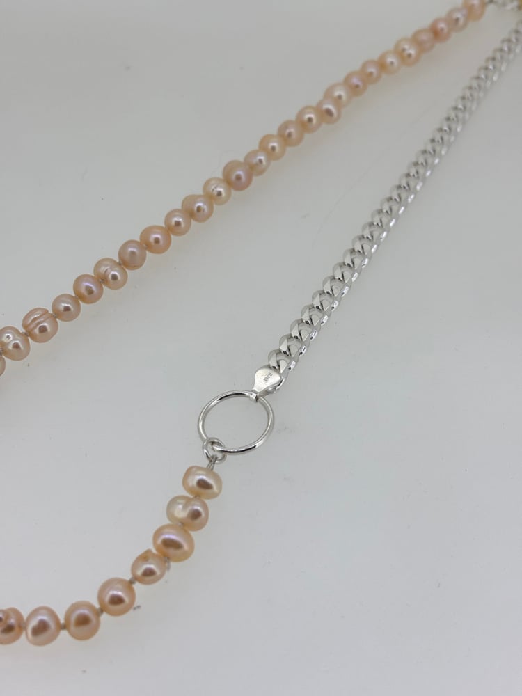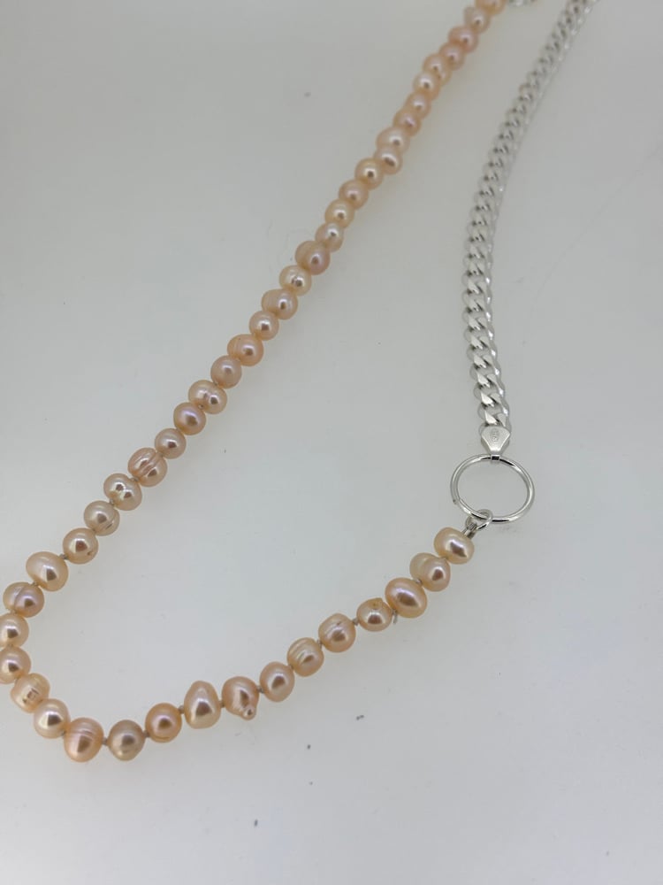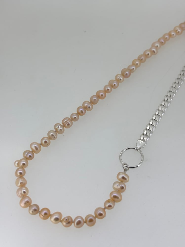 Hand knotted blush pearls with heavy sterling sliver chain
