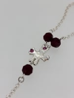 Sterling silver rosary with pearls, garnets, lab sapphires, red glass beads, and hand cast recycled silver crosses